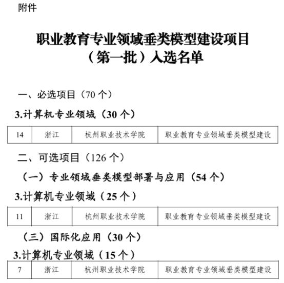 近日,教育部职业教育发展中心正式公布《职业教育专业领域垂类模型建设项目(第一批)入选名单》,我校成功入选“职业教育专业领域垂类模型建设”项目,同时获批必选项目(计算机专业领域)与可选项目(模型部署应用+国际化应用)两大类别立项,标志着学校在AI+职业教育融合创新领域取得新突破。